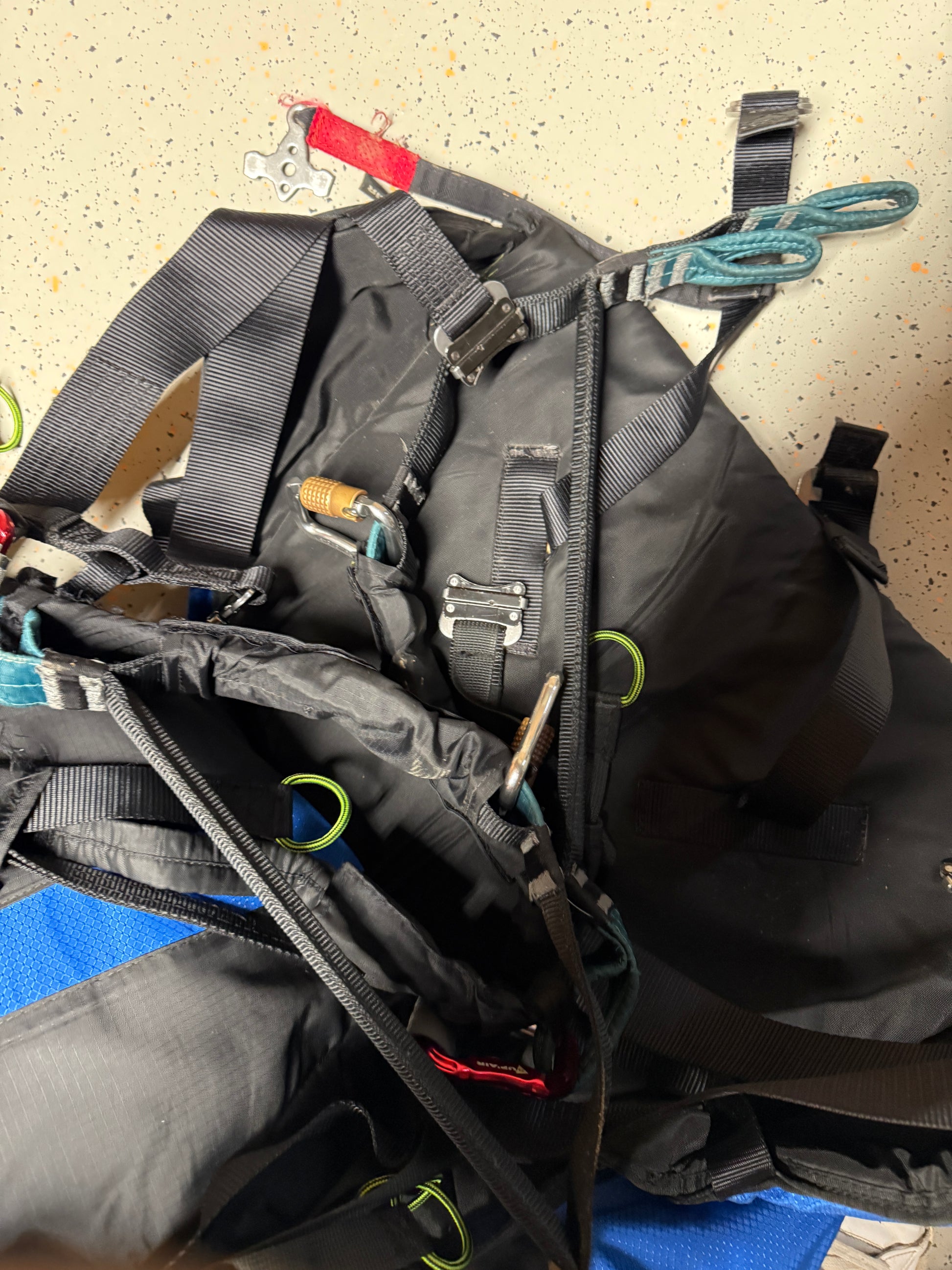 A practical tandem pilot harness – Supar Evasion (2017) – sold together with tandem spreaders and 4 carabiners. This is a complete basic setup for tandem flying, ideal for instructors, schools, or as a backup system.